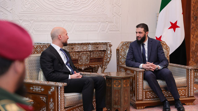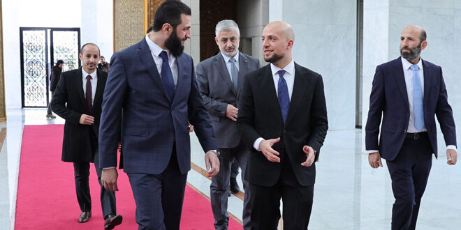 دمشق-سانا التقى قائد الإدارة السورية الجديدة أحمد الشرع مع وفد ليبي رفيع المستوى برئاسة وليد عمار اللافي وزير الدولة للاتصال والشؤون السياسية.