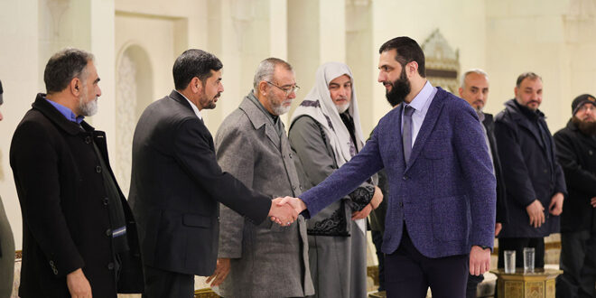دمشق-سانا بارك وجهاء مدينة إدلب لقائد الإدارة السورية الجديدة أحمد الشرع بمناسبة انتصار الثورة السورية.