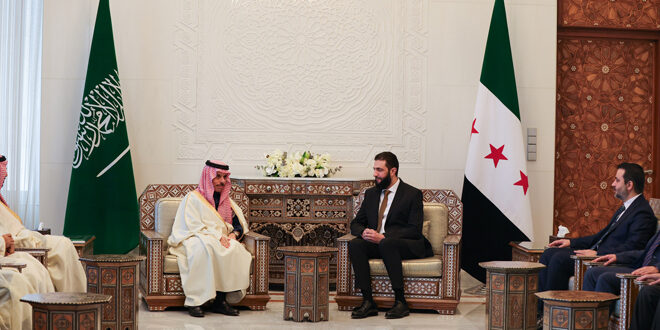 دمشق-سانا استقبل القائد أحمد الشرع ووزير الخارجية أسعد الشيباني وفداً رفيع المستوى من المملكة العربية السعودية برئاسة الأمير فيصل بن فرحان آل سعود.