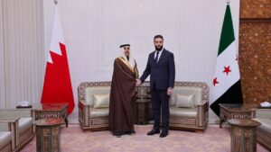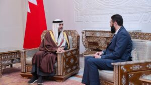 التقى قائد الإدارة السورية الجديدة أحمد الشرع وفداً بحرينياً رفيع المستوى برئاسة رئيس جهاز الأمن الاستراتيجي معالي الشيخ أحمد بن عبد العزيز آل خليفة.