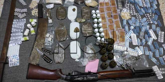 وأوضحت وزارة الداخلية في بيان تلقت سانا نسخة منه أنه بعد ورود المعلومات والمتابعة تمكن فرع مكافحة المخدرات بحلب من القبض على أربعة أشخاص من متعاطي ومروجي المخدرات والعثور بحوزتهم على 2 كيلو غرام من مادة الحشيش المخدر وستة آلاف حبة مخدرات متنوعة ومبالغ مالية مزورة إضافة إلى ذخائر حربية تمت مصادرتها جميعاً.