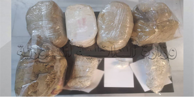 وأوضحت وزارة الداخلية في بيان تلقت سانا نسخة منه أنه نتيجة البحث والمتابعة تمكن فرع مكافحة المخدرات بدمشق من إلقاء القبض على ثلاثة أشخاص في محلتي الزاهرة بدمشق وحرستا بريف دمشق، وبحوزتهم 6.500 كيلو غرامات من مادة الحشيش المخدر، و2500 حبة كبتاغون مخدرة و 10 غرامات من مادة الكريستال المخدرة.