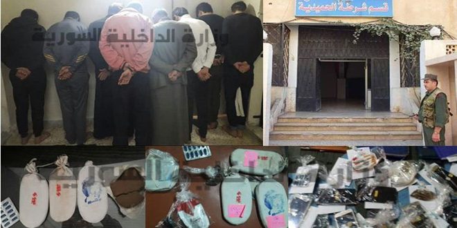 وأشارت وزارة الداخلية في بيان لها اليوم إلى أنه في إطار الجهود التي تبذلها الوحدات الشرطية بمتابعة المشبوهين والمطلوبين بتعاطي وترويج المواد المخدرة ومن خلال المتابعة والمراقبة المستمرة تمكن عناصر قسم شرطة الحميدية في حماة من إلقاء القبض على “ثمانية أشخاص” لإقدامهم على الإتجار بمادة الحشيش المخدر وتعاطيها.