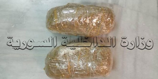أعلنت وزارة الداخلية أن فرع مكافحة المخدرات بدمشق ألقى القبض على شخصين من مروجي المخدرات بحوزتهما ستة كيلوغرامات وستمئة غرام من مادة الحشيش المخدر.
