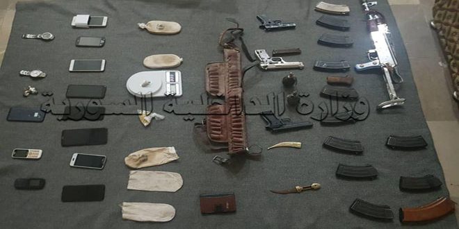 وذكرت وزارة الداخلية في بيان تلقت سانا نسخة منه اليوم أنه من خلال المتابعة والبحث المستمر تمكن فرع الأمن الجنائي في الحسكة من القبض على شخصين في حي المريديان وبالتحقيق معهما اعترافا بإقدامهما على ترويج المواد المخدرة وسرقة المنازل وتمت مصادرة 382 غراماً من مادة الحشيش المخدر و200 حبة كبتاغون مخدرة وبندقية حربية و12 مخزن ذخيرة وقنبلتين و3 مسدسات حربية ومصاغ ذهبي و10 جوالات و3 بطاقات شخصية مسروقة عائدة لمواطنين آخرين.