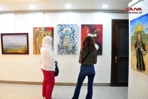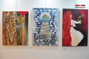 حمل المعرض الفني التشكيلي السنوي الذي ينظمه اتحاد الفنانين التشكيليين الفلسطينيين بمناسبة يوم القدس العالمي عنوان “القدس هي المحور” ليعكس معاني تتصل بالتراث والمرأة الفلسطينية المناضلة والمقاومة.