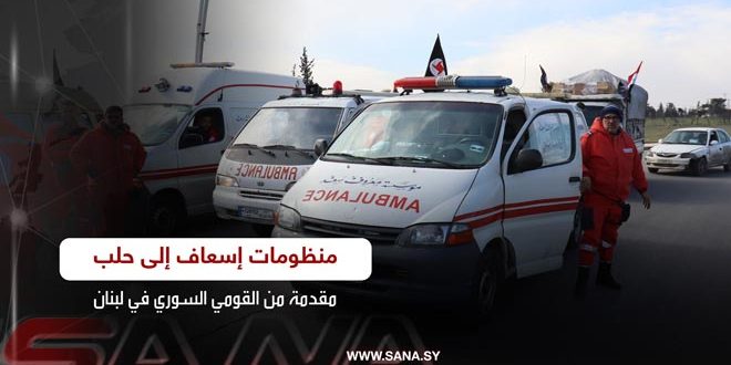 القومي السوري في لبنان يقدم سيارات ومنظومات إسعاف إلى حلب