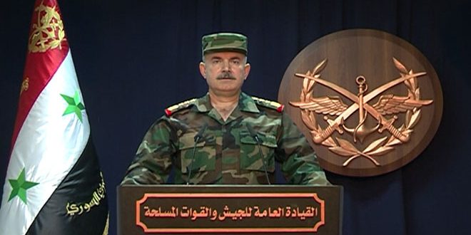 وجددت القيادة العامة للجيش التأكيد على استمرارها في الدفاع عن سورية وحماية مواطنيها مشددة على أن مثل هذه الاعتداءات لن تثني قواتنا المسلحة والقوات الرديفة عن الاستمرار في سحق ما تبقى من مجاميع إرهابية مسلحة على امتداد الجغرافيا السورية.