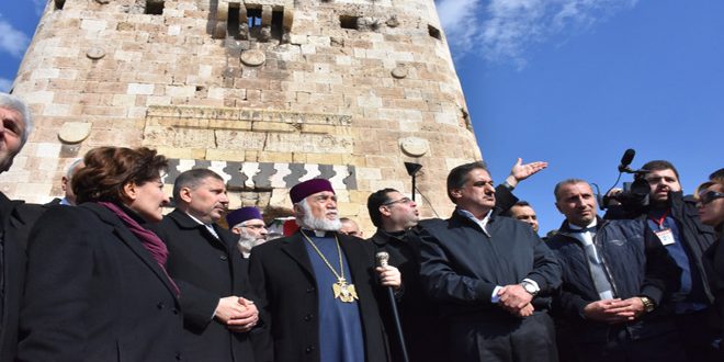 بدوره بين المحافظ أن التدمير الممنهج من قبل الإرهابيين للمدينة القديمة بما تضمه من مساجد وكنائس وأوابد أثرية وحضارية هو جزء من الحرب الإرهابية على سورية بهدف تدمير وطمس تاريخها الذي كان وسيظل مشرقاً لافتا إلى أن كل الجهود تتركز على إعادة الإعمار والبناء بعد أن حقق جيشنا الانتصار في حلب وطهرها من الإرهاب والإرهابيين.