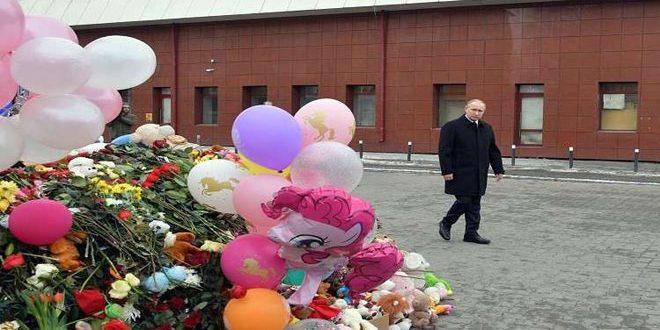 أعلن الرئيس الروسي فلاديمير بوتين الحداد في عموم روسيا غدا على ضحايا حريق مركز زيمنيا فيشنيا التجاري الترفيهي في مدينة كيميروفو الروسية.