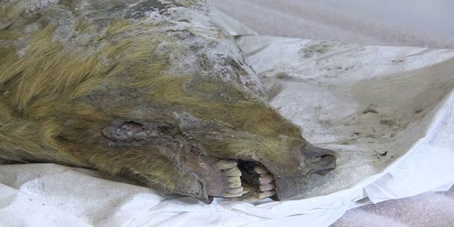 عثر احد السكان في منطقة سيبيريا الروسية على رأس ذئب محفوظة في الجليد منذ 40 ألف سنة وبحالة جيدة جدا لدرجة أن الفراء والأسنان والمخ وأنسجة الوجه لم يصبها أي تلف تقريبا.