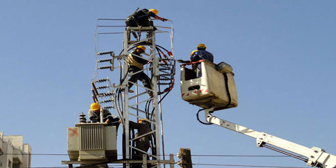 رئيس نقابة عمال الكهرباء باتحاد عمال درعا زياد عرار أشار بتصريح لمراسل سانا إلى أن ورشات الكهرباء استطاعت إعادة محطة الباسل ببلدة المسيفرة إلى الخدمة وتعمل حاليا على تجهيز محطة نوى من خلال تركيب محولة استطاعة 20 ميغا لوضعها بالاستثمار بدل المسروقة خلال سنوات الأزمة الماضية.