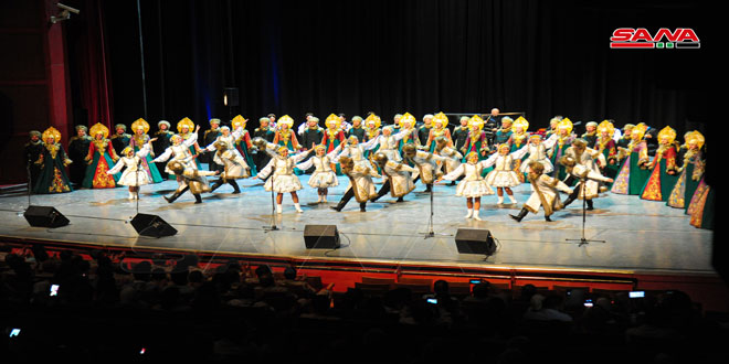 وقدمت الفرقة المؤلفة من 79 فناناً روسياً فقرات غنائية ولوحات فنية راقصة تعكس الثقافة السيبيرية للجمهور الذي ضم أفراداً من الجالية الروسية في سورية.