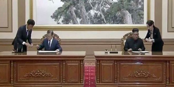 أعلن الرئيسان الكوري الديمقراطي كيم جونغ أون والكوري الجنوبي مون جيه إن اليوم أنهما اتفقا على السعي لتحقيق تقدم حقيقي مطلوب لجعل شبه الجزيرة الكورية خالية من الأسلحة النووية وتهديداتها.