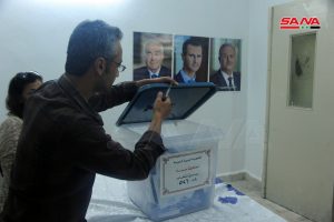وكان السوريون أدلوا بأصواتهم منذ السابعة صباحا عبر 12102 مركز انتخابي في جميع المحافظات لاختيار رئيس الجمهورية العربية السورية من بين ثلاثة مرشحين هم عبد الله عبد الله وبشار الأسد ومحمود مرعي وكلهم إصرار على إنجاح هذا الاستحقاق الدستوري.