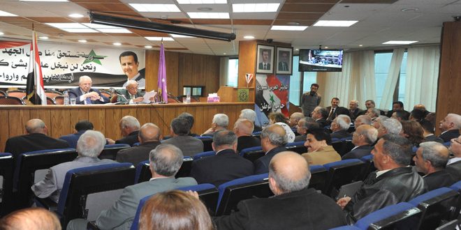 ولفت الامين العام للحزب إلى أن الهدف من الحرب على سورية إلغاء دورها القومي والنيل من عروبتها التي يراها حزب الاتحاد الاشتراكي العربي ” خطا أحمر لا يحق لأحد الاقتراب منه”.