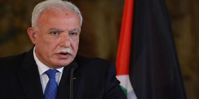 جدد وزير الخارجية الفلسطيني رياض المالكي مطالبته المجتمع الدولي بتحمل مسؤولياته واتخاذ إجراءات فورية لإنهاء الاحتلال ومحاسبة المسؤولين الإسرائيليين على جرائمهم بحق الفلسطينيين.