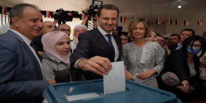 أدلى المرشح لمنصب رئيس الجمهورية بشار الأسد والسيدة أسماء الأسد بصوتيهما في مركز الاقتراع بمجلس بلدية دوما في ريف دمشق.