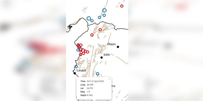 وأوضح المركز في إعلان تلقت سانا نسخة منه صباح اليوم أن الهزات المسجلة توزعت على 9 هزات في لواء إسكندرون، وهزة واحدة غرب حمص شدتها 1.9 درجة، وهزة وسط تركيا درجتها 2.6.