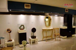 رئيس فرع اتحاد الفنانين التشكيليين بحمص إيميل فرحة أثنى على أسلوب ونوس وقدرتها على صنع الجمال من مختلف الخامات.