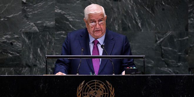 أكد وليد المعلم نائب رئيس مجلس الوزراء وزير الخارجية والمغتربين في كلمة سورية أمام الدورة الـ74 للجمعية العامة للأمم المتحدة اليوم عزم سورية على استكمال الحرب ضد الإرهاب بمختلف مسمياته حتى تطهير كل الأراضي السورية منه وأن أي اتفاقات حول الوضع في أي منطقة سورية دون موافقة الدولة السورية مدانة ومرفوضة شكلا ومضمونا.
