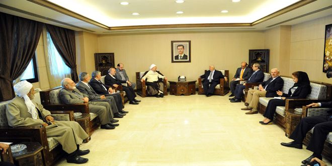 استقبل وليد المعلم نائب رئيس مجلس الوزراء وزير الخارجية والمغتربين ظهر اليوم وفدا من علماء الدين في الجمهورية الإسلامية الإيرانية برئاسة سماحة آية الله محسن اراكي أمين عام مجمع التقريب بين المذاهب الإسلامية.