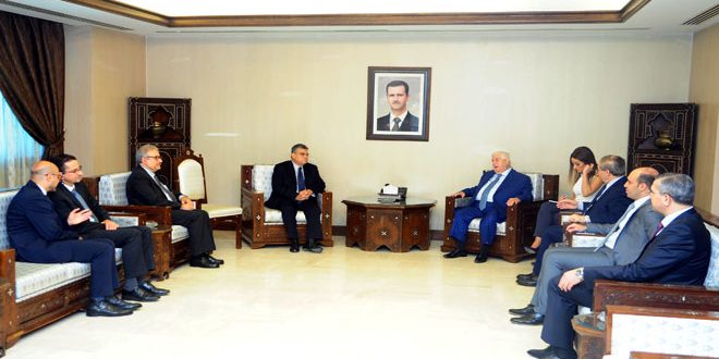 استقبل وليد المعلم نائب رئيس مجلس الوزراء وزير الخارجية والمغتربين صباح اليوم مراد وهبة المدير الإقليمي لبرنامج الأمم المتحدة الإنمائي والوفد المرافق له وبحث معه سبل تعزيز التعاون القائم بين الحكومة السورية والبرنامج بما يسهم في تعزيز البرامج التنموية التي تقوم بها الحكومة والتي تهدف إلى تلبية كل الاحتياجات الإنسانية الأساسية للمواطن السوري.