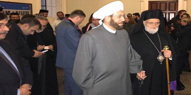 ولفت سماحة المفتى إلى أن سورية شعب واحد ولا فرق بين أبنائها مشيرا إلى أن “سورية دفعت ثمنا غاليا امام 300 ألف إرهابي أتوا من أوروبا وأنحاء العالم”.