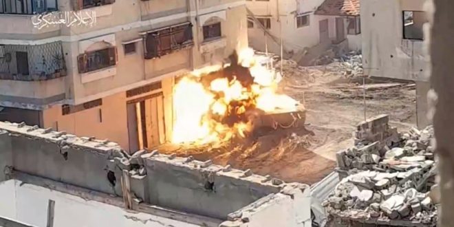 كما استهدفت المقاومة بقذيفتي “الياسين 105” دبابتين للعدو الصهيوني من نوع “ميركافا” شمال مدينة خان يونس جنوب القطاع وقصفت بوابل من قذائف الهاون تجمعات لجنود العدو وسط القطاع.