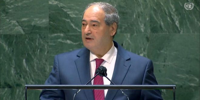 وقال المقداد في كلمة سورية أمام الجمعية العامة للأمم المتحدة: إذا كان كوفيد 19 يقتل مرة فهو يقتل مرات ومرات في ظل الإجراءات الاقتصادية القسرية غير الشرعية المفروضة على عدد من الدول.