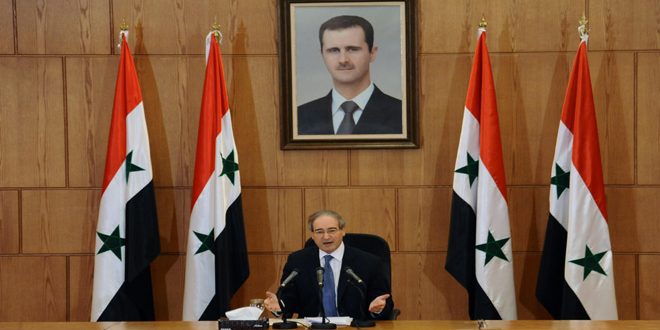 وخلال مؤتمر صحفي عقده اليوم في دمشق قال المقداد “أؤكد نيابة عن الجمهورية العربية السورية أن سورية تخلصت من برنامجها الكيميائي بشكل كامل ..لم تعد هناك أسلحة كيميا