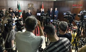 وفي مؤتمر صحفي عقب المباحثات أكد وزير الخارجية والمغتربين أن العلاقات السورية الجزائرية متجذرة في التاريخ والجزائر وقفت إلى جانب الشعب السوري طيلة سنوات الحرب الإرهابية عليه مشيراً إلى أن الهم الأساسي لسورية تعزيز التضامن العربي وتوحيد الكلمة في مواجهة التحديات المشتركة.