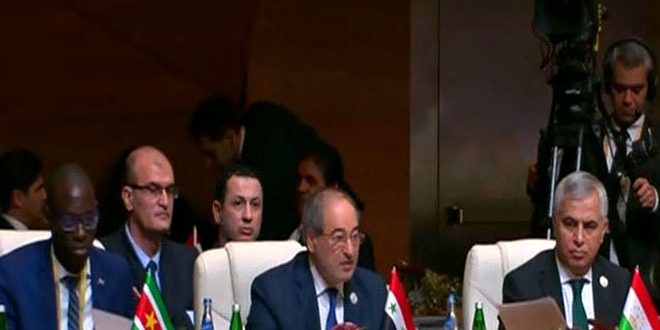 أكد رئيس وفد الجمهورية العربية السورية إلى قمة دول حركة عدم الانحياز نائب وزير الخارجية والمغتربين الدكتور فيصل المقداد أن سورية مستمرة في مكافحة الإرهاب بالتوازي مع المضي في حل سياسي للأزمة مبني على حوار سوري سوري بقيادة وملكية سورية ودون تدخل خارجي مشددا على أن اعتداءات النظام التركي على الأراضي السورية مرفوضة ومدانة وتشكل انتهاكا لميثاق الأمم المتحدة وقرارات مجلس الأمن التي تؤكد على احترام سيادة سورية ووحدتها وسلامة أراضيها.