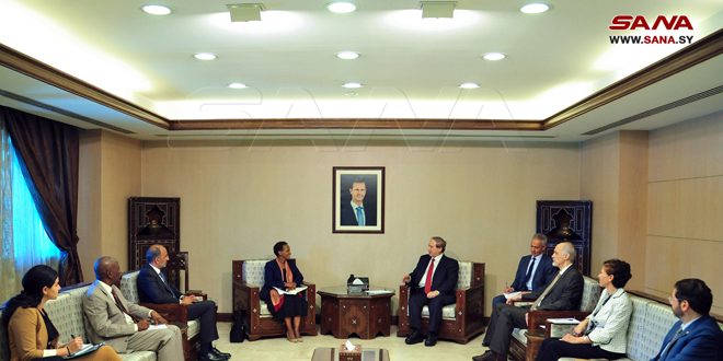 بحث الدكتور فيصل المقداد وزير الخارجية والمغتربين صباح اليوم مع مساعدة الأمين العام للأمم المتحدة للشؤون الإنسانية جويس ميسويا والوفد المرافق لها دور الأمم المتحدة في الاستجابة الإنسانية للأوضاع في سورية والأنشطة التي يقوم بها مكتب تنسيق المساعدات الإنسانية (اوتشا) والمنظمات الدولية العاملة في الشأن الإنساني ومختلف جوانب العمل الإنساني الذي تقوم به الأمم المتحدة ووكالاتها في سورية.