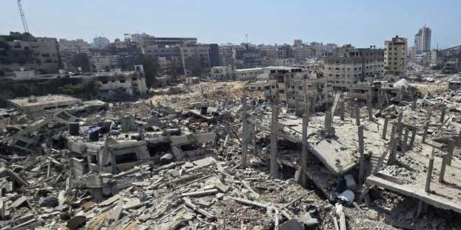 وأوضح المكتب في بيان أن الاحتلال دمر خلال هذه الجريمة 14 برجاً وعمارة سكنية وعشرات المنازل تعود لفلسطينيين شردهم الاحتلال منها قسراً تحت قصف الطائرات وقذائف الدبابات، مطالباً المجتمع الدولي بالتحرك الفوري وممارسة الضغط على الاحتلال لوقف الإبادة الجماعية وجرائمه المتواصلة للشهر السابع على التوالي بحق الفلسطينيين ولاسيما الأطفال والنساء.
