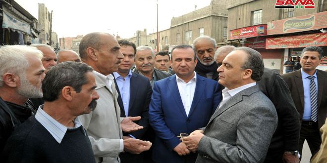 جال رئيس مجلس الوزراء المهندس عماد خميس صباح اليوم على الأسواق الشعبية في مدينة دمشق كشارع الثورة وسوق الهال القديم وشارع مدحت باشا وسوق الدويلعة الشعبي وساحة شمدين واطلع على الحركة التجارية واستمع من المواطنين إلى واقع الخدمات المقدمة لهم.