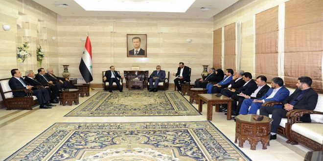 وأشار رئيس مجلس الوزراء إلى أن الحكومة السورية ماضية بمحاربة الإرهاب والقضاء عليه بالتوازي مع تحقيق الصمود الاقتصادي من خلال تنفيذ رؤءيتها لإعادة حركة الإنتاج والاستثمار والتعاون المشترك مع الدول الصديقة مبينا حرص الحكومة على تنفيذ الاتفاقيات الموقعة مع الجانب الإيراني وخاصة في مجال الطاقة وتوقيع العقود التي تعود بالفائدة على البلدين.