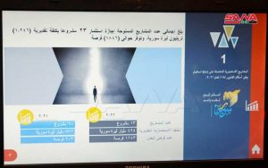 وبلغ عدد المشروعات الممنوحة إجازة استثمار منذ بداية العمل بقانون الاستثمار الجديد 23 مشروعاً بتكلفة تقديرية 1.246 تريليون ليرة سورية وتوفر نحو 1846 فرصة عمل وتشمل مجالات صناعة الحقن الطبية والأقنعة البلاستيكية وإنتاج المذيبات والمواد الأولية للمبيدات الحشرية والدهانات وإنتاج الكحول الإيتيلي الطبي والزيوت والسمنة والزبدة النباتية وإنتاج خيوط أكريليك وخيوط ممزوجة وتوليد الكهرباء باستخدام الطاقة المتجددة “الكهروضوئية” وإنتاج حليب الأطفال الرضع وصناعة بودرة السيلكا من الرمال الكوارتزية وإنتاج الأدوية البشرية وصناعة الأسمدة الفوسفاتية والمنظفات والبودرة والصابون والمواد المعقمة والمطهرة.