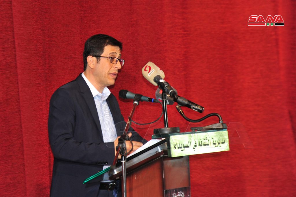 وزير التعليم العالي والبحث العلمي الدكتور بسام إبراهيم أشار إلى العمل على رفد فرع جامعة دمشق في السويداء بالكوادر التدريسية اللازمة حيث تم تخصيص 25 اختصاصا من مسابقة أعضاء الهيئة التدريسية للسويداء إضافة إلى وضع خطة للنهوض بواقع الجامعة لجهة التجهيزات الفنية والمخابر وإشادة المباني التعليمية الجديدة بينما لفت وزير الأشغال العامة والإسكان المهندس سهيل عبد اللطيف إلى أنه تم تخصيص 612 مسكنا من السكن الشبابي و147 مسكنا من السكن العمالي ويجري العمل على إنجاز المشروعين وفق المدد الزمنية المحددة كما يجري العمل على الانتهاء من إشادة القصر العدلي ودراسة إمكانية استكمال إنجاز معمل تاميكو.