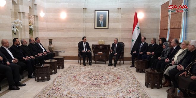 التقى رئيس مجلس الوزراء المهندس حسين عرنوس اليوم وفداً برلمانياً عراقياً برئاسة النائب الأول لرئيس مجلس النواب العراقي محسن المندلاوي.