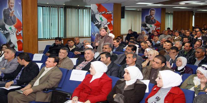 رئيس اتحاد عمال حمص سامي أمين دعا إلى ضرورة ايلاء الجانب الثقافي في مجال عمل النقابة الاهتمام اللازم واتخاذ النقابة لمسؤولياتها كاملة في هذا المجال بما يسهم في تحصين الآراء وتعزيز الارتقاء بالمعارف والقدرات.