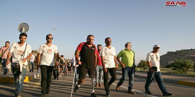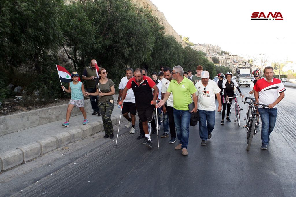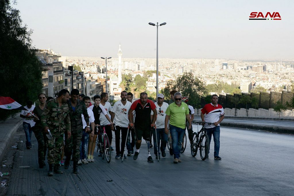 رسالة وفاء وإخلاص لأرواح الشهداء ومثلها للجرحى بضرورة ممارسة حياتهم الطبيعية وتحدي إصاباتهم أوصلها النقيب الجريح علي محسن علي مع ختام مسيره من قريته بشنين في ريف مصياف بمحافظة حماة وصولا إلى دمشق قاطعا مسافة تقدر بـ240 كم.