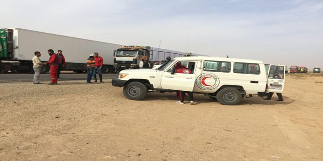 وذكرت منظمة الهلال الأحمر العربي السوري في بيان تلقت سانا نسخة منه أن القافلة مقدمة من اللجنة الدولية للصليب الأحمر والاتحاد الدولي لجمعيات الصليب الأحمر والهلال الأحمر والأمم المتحدة وتضم مواد غذائية وصحية ومعدات طبية ضرورية إضافة لمجموعة من المواد المتنوعة الضرورية.
