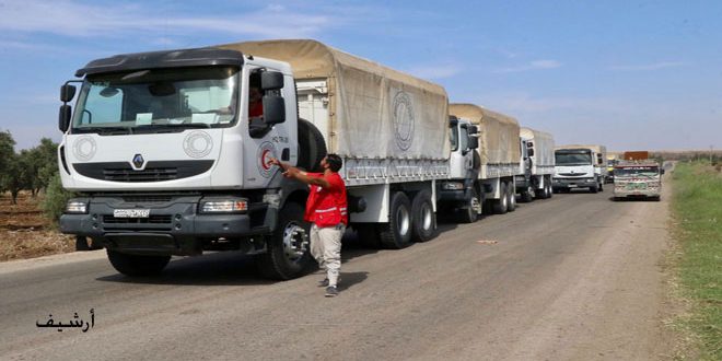 وذكر رئيس فرع الهلال الأحمر العربي السوري بدرعا الدكتور أحمد المسالمة في تصريح لمراسل سانا أن المساعدات الغذائية المحمولة ضمن 4 شاحنات عبارة عن 3 آلاف سلة غذائية ومثلها من الدقيق تستفيد منها نحو 3 آلاف عائلة في بلدة محجة بالريف الشمالي.