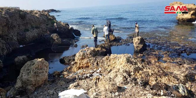 ومن خلال المتابعة والجولات المتكررة على الشاطئ والمعلومات الواردة من الجهات المعنية لرصد البقع النفطية وإزالتها تم الانتهاء من إزالة مادة الفيول من كامل شاطئ مدينتي جبلة واللاذقية والممتدة من الفاخورة وعرب الملك انتهاء بشاطئ المدينة الرياضية إلا إذا ظهرت بقع تسرب جديدة.