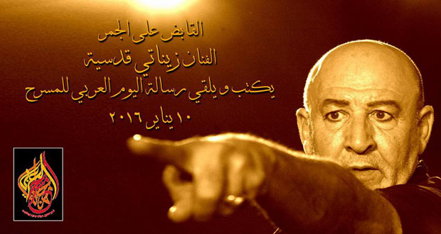 اختارت الهيئة العربية للمسرح في الشارقة الفنان المسرحي زيناتي قدسية لإلقاء رسالة “اليوم العربي للمسرح” في مهرجان المسرح العربي الذي تنطلق دورته الثامنة في العاشر من كانون الثاني عام 2016.