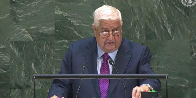 الوزير المعلم يلقي كلمة سورية أمام الدورة الـ74 للجمعية العامة للأمم المتحدة