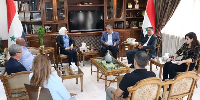 وخلال لقائه اليوم رئيسة نقابة عمال الزراعة والمياه والصناعات الغذائية في الأردن الدكتورة بشرى سلمان والوفد المرافق لها، لفت الوزير قطنا إلى أهمية تطوير العلاقات السورية الأردنية في المجال الزراعي والتبادل التجاري، وإلى دور النقابات والاتحادات والمنظمات كرديف للقطاعات الحكومية لدعم المنتجين الزراعيين وتأمين الاستقرار لهم وتوفير مستلزماتهم للاستمرار بعملية الإنتاج.