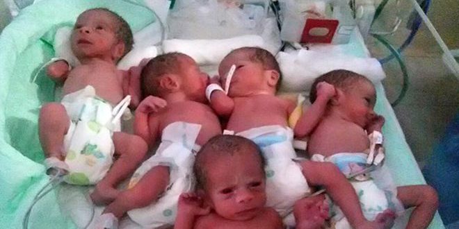 وتم توليد التوائم البالغة أعمارهم 27 أسبوعاً بعملية قيصرية وتتراوح أوزانهم بين 580 و960 غراماً وتوفي أحد المواليد بعد الولادة.