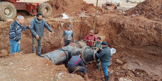 أنهت المؤسسة العامة لمياه الشرب بمحافظة درعا أعمال الصيانة على خط الدفع الرئيسي في محطتي الأشعري بريف المحافظة الغربي.